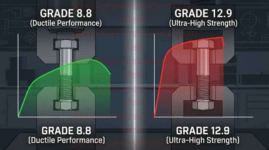 Known as “medium carbon steel,” Grade 8.8 is the industry standard for structural steelwork. It strikes an ideal balance between ductility (the ability to deform without snapping) and strength.